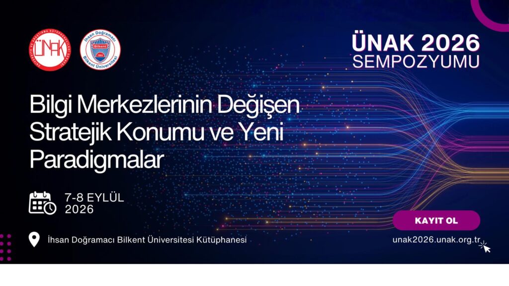 Üniversite ve Araştırma Kütüphanecileri Derneği (ÜNAK) tarafından düzenlenen ÜNAK 2026 Sempozyumu, Bu yıl “Bilgi Merkezlerinin Değişen Stratejik Konumu ve Yeni Paradigmalar” temasıyla 7 – 8 Eylül 2026 tarihleri arasında İhsan Doğramacı Bilkent Üniversitesi Kütüphanesi ev sahipliğinde gerçekleştirilecektir.